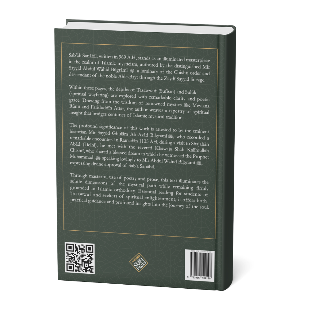 Ontdek een tijdloos meesterwerk van islamitische spiritualiteit door dit buitengewone scriptie van Qutb-ul-Aqṭāb Sayyid Mīr ‘Abd-ul-Wāḥid al-Bilgrāmī al-Chishtī رحمه الله, een vooraanstaand afstammeling van de spirituele lijn die verbonden is met Sayyidunā Qutb-ud-Dīn Bakhtiyār Kākī رحمه الله.